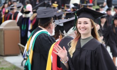 “For me, this Commencement is number 16, and with very mixed feelings it is my last as President,” Wolk said earnestly. “It is a bittersweet day for me because I have come to know and love so many of you. I shook many of your hands at freshman orientation and now I shake your hand again today. It is an honor for me. I love how you transformed yourself. I love how you transformed Castleton. I love how you transformed me. I ask you to always remember your special place in the small University with the big heart. Thank you and Keep Smiling.”